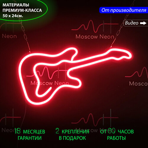 Неоновый светильник / Неоновая светодиодная вывеска на стену / Настенная неоновая лампа "Гитара", 50 х 24 см.