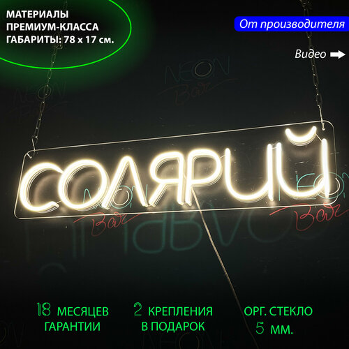 Неоновый светильник / Неоновая светодиодная вывеска на стену / Настенная неоновая лампа, неоновая надпись "Солярий" для салона, 78 x 17 см.