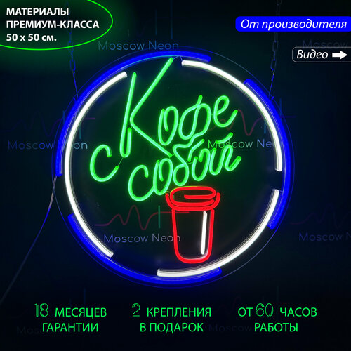 Вывеска из гибкого неона «Кофе с собой» 50х50 см. для кафе и кофеен