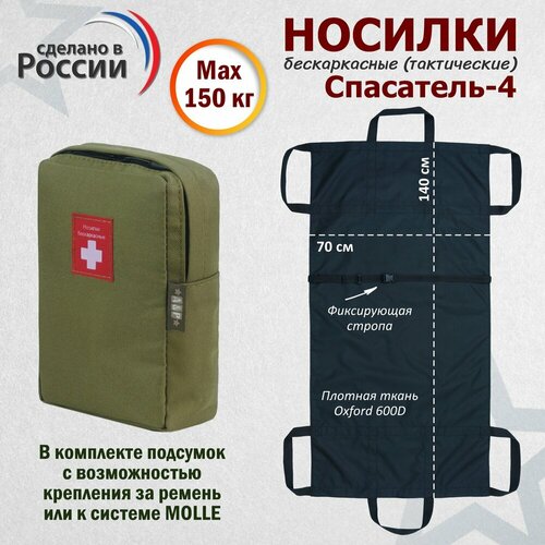 Максимальный вес переносимого человека: 150 кг. Вес носилок с подсумком: 450 грамм.