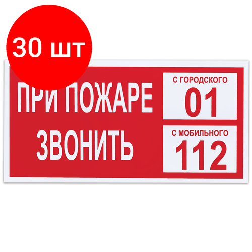 Комплект 30 шт, Знак вспомогательный "При пожаре звонить 01", прямоугольник, 300х150 мм, самоклейка, 610047/В 47