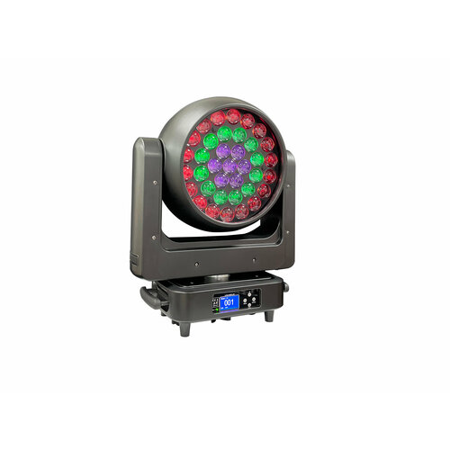 Световой прибор полного вращения. Источник света: 300Вт RGBW LED. Угол раскрытия луча, град. Beam: 5°-50°. Режим работы: DMX 512, RDM. DMX-каналы: 12 / 17. Управление: DMX. Дисплей: LCD. Рабочее напряжение, В: AC90-240 В, 50/60 Гц. Класс защиты: IP20.