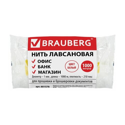 Нить лавсановая для прошивки документов белая диаметр 0 7 мм длина 1000 м ЛШ 170 BRAUBERG, 3 шт