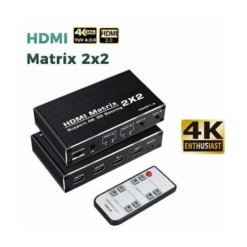 Матричный Коммутатор HDMI 2х2 4K 60 Гц, 1080P, HDR, 3D