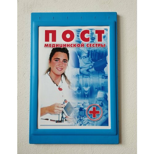Прикабинетная табличка А4 для сменной информации. Голубая