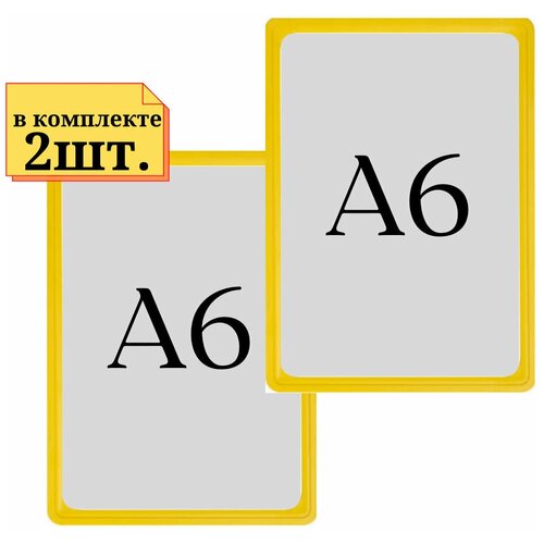 2шт Рамка А6 желтая с антибликовым протектором, Пластиковая рамка, Рамка для ценника, Ножки и крепление не идет в комплекте. SD4-А6