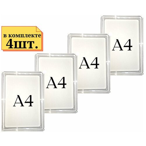 4шт Рамка А4 прозрачная с антибликовым протектором, Пластиковая рамка, Рамка для ценника, Ножки и крепление не идет в комплекте. SD4-А4