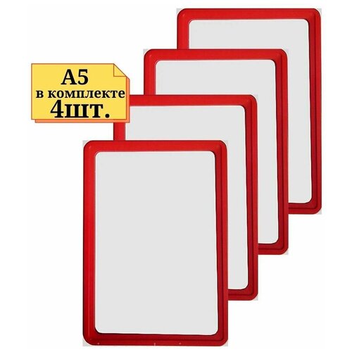 4шт Рамка А5 красная с антибликовым протектором, Пластиковая рамка, Рамка для ценника, Ножки и крепление не идет в комплекте. PF-A5-К