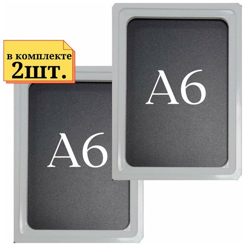2шт Рамка А6 серая с антибликовым протектором, Пластиковая рамка, Рамка для ценника, Ножки и крепление не идет в комплекте. SD4-А6