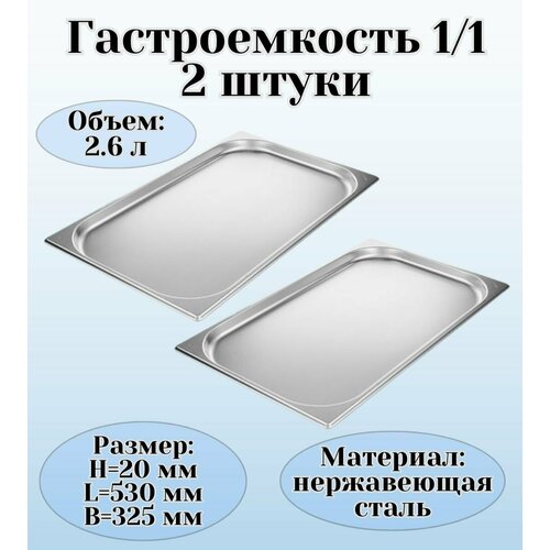 Гастроемкость (1/1) H=20 мм L=530 мм B=325 мм 2 штуки ProHotel