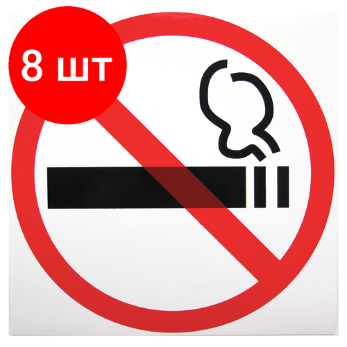 Комплект 8 шт, Знак "Знак о запрете курения", диаметр 200 мм, пленка самоклейка, 610829/Р 35Н