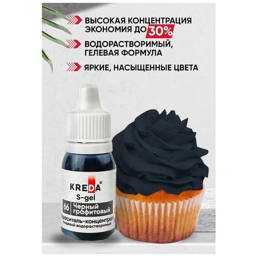 Краситель пищевой концентрат гелевый Kreda S-gel черный графитовый №66, 10 мл
