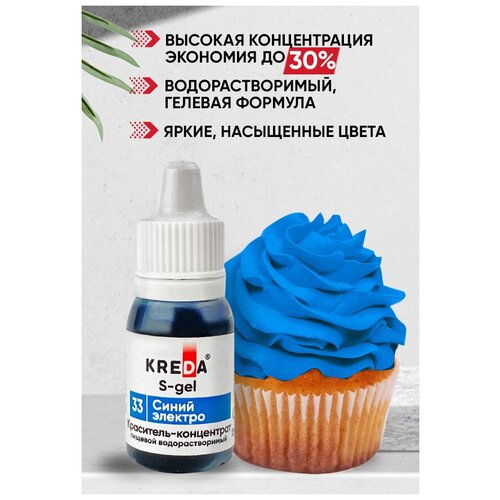 Краситель пищевой концентрат гелевый Kreda S-gel синий электро №33, 10 мл
