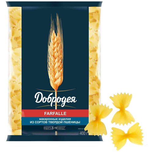 Макароны добродея FARFALLE 10 шт. группа А высший сорт, 400г, Россия.