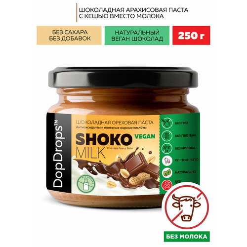 Шоколадная арахисовая паста DopDrops без молока на кешью веган, 250 г