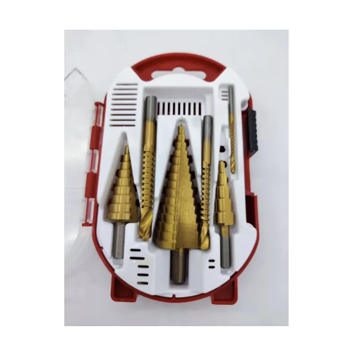 Набор ступенчатых и зубчатых сверл 6 предметов, HSS 4241, фрезерованные сверла в кейсе