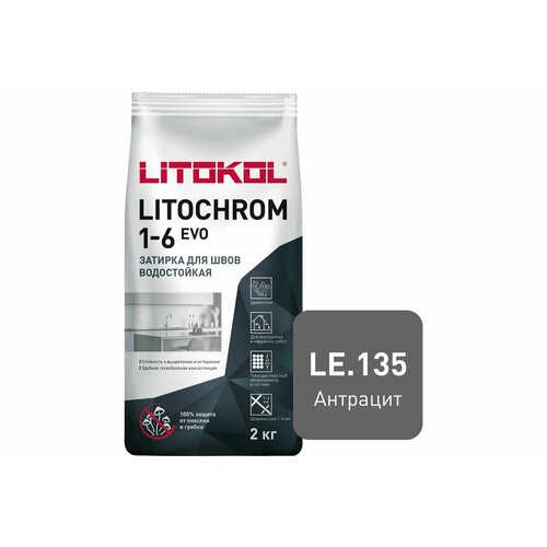 Затирка цементная LITOKOL LITOCHROM 1-6 EVO с противогрибковыми свойствами для заполнения межплиточных швов LE.135 антрацит 2кг
