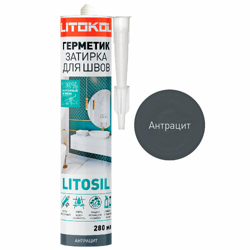 Герметик-затирка санитарный силиконовый LITOKOL LITOSIL Антрацит 280 мл