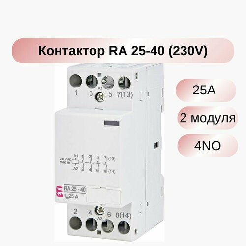 Контактор модульный RA 25-40 230V AC (2 модуля, 4NO) ETI 002464094