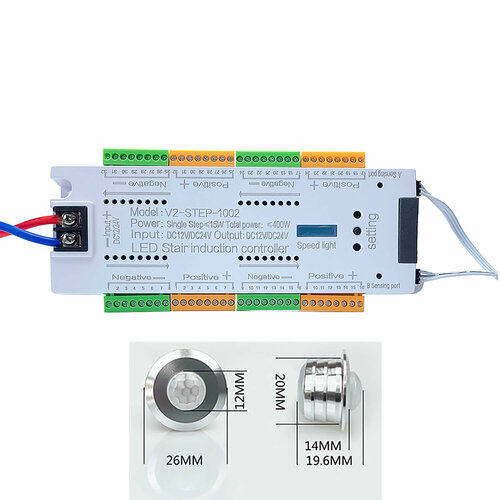 Контроллер автоматической подсветки ступеней лестниц (до 32 ступеней) 12-24В, 400Вт