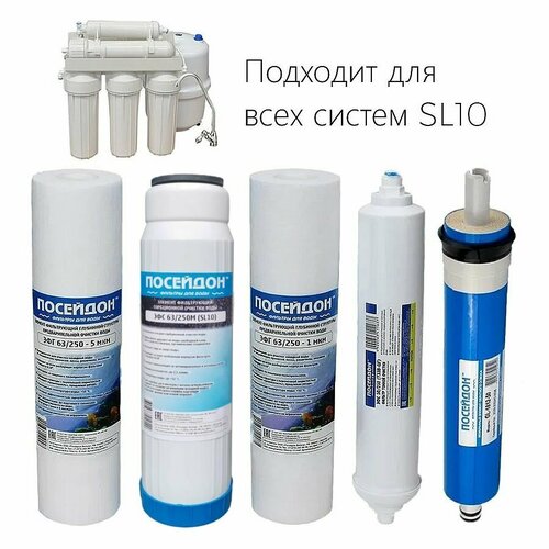 Комплект картриджей 5 ступеней для блока предочистки SL10 Посейдон