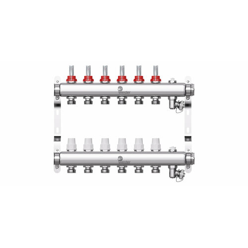 Коллектор 1" из нерж. стали на 6 выходов 3/4"ЕК с расходомерами, группа в сборе, Wester MUFS6134 0-32-1508