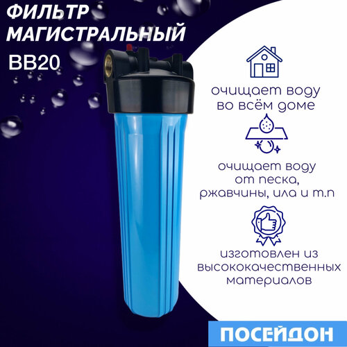 Корпус магистрального фильтра Посейдон 1Р, ВВ20, для холодной воды, 1", синий