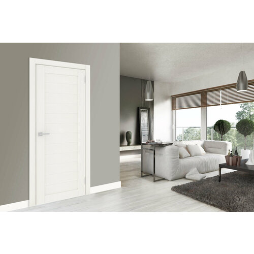 Дверь межкомнатная Леском Т1, 800х2000 глухая, МДФ, эмалит кремовый, комплект с коробкой и наличником