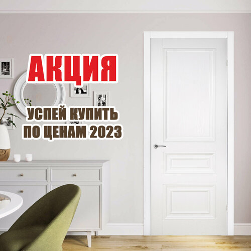 Комплект межкомнатная дверь Классик 8, глухая, с коробкой и наличником, белое дерево 80х200 см
