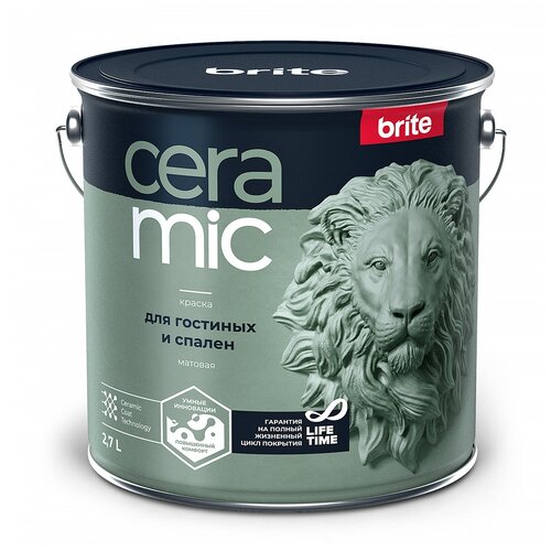 Краска акриловая brite Ceramic для гостиных и спален матовая для детской влагостойкая моющаяся матовая бeлый 2.7 л