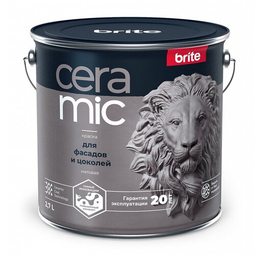 Краска акриловая brite Ceramic для фасадов и цоколей матовая 9 л