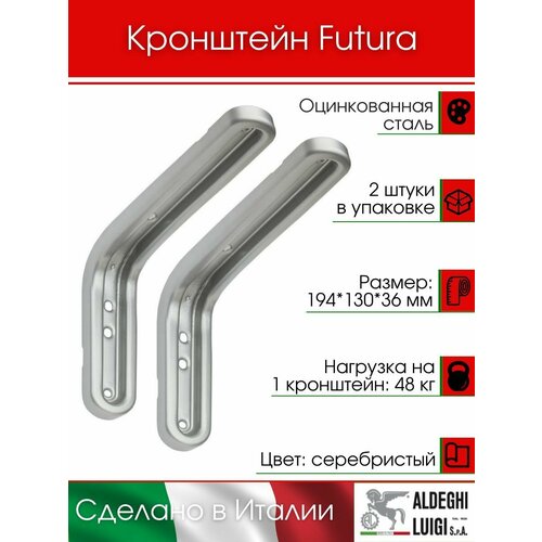 Кронштейн FUTURA, ALDEGHI LUIGI SpA 194х130х36 мм, оцинкованный, цвет:, 48 кг, 2 шт, 2523VS20_P8_U2