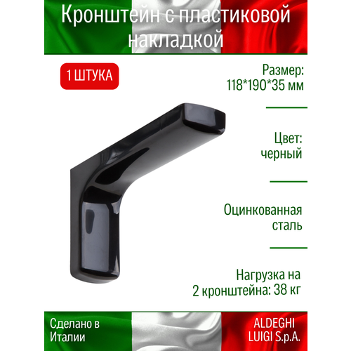 Кронштейн с пластиковой накладкой ALDEGHI LUIGI SpA 118х190 мм, оцинкованный, цвет:, 38 кг, 2 шт, 2512PR20_P2_U2