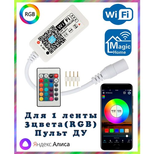 Умный WIFI контроллер RGB для светодиодных лент с пультом ДУ, RGB (4pin, 3 цвета в одном чипе), Яндекс. Алиса, Magic Home