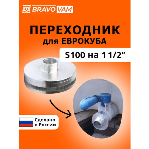 Переходник на Еврокуб 100 мм на 1 1/2" (Наружная резьба) Упорная резьба с широким шагом