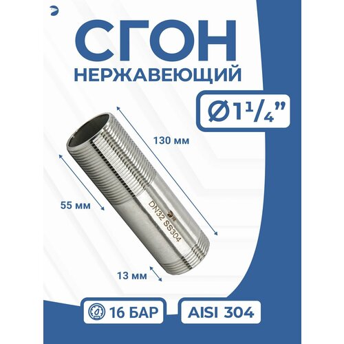 Сгон (двойной ниппель) нержавейка Ду 32 (1 1/4 дюйма), AISI 304 PN16