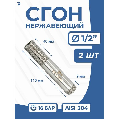 Сгон нержавейка Ду 15 (1/2 дюйма), AISI 304 PN16, набор 2 шт