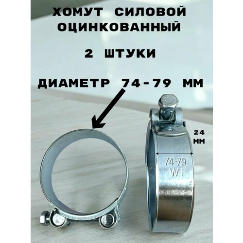 Хомут силовой, оцинкованный диаметр 74-79 мм, ширина 24 мм