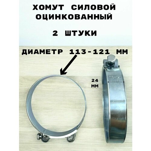 Хомут силовой, оцинкованный диаметр 113-121 мм, ширина 24 мм