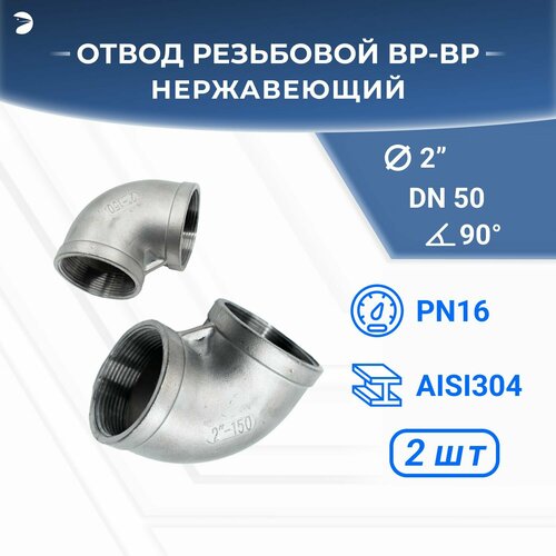 Отвод стальной резьбовой вр/вр нержавеющий, AISI304 DN 50 (2") дюйма, (CF8), PN16 набор 2 шт