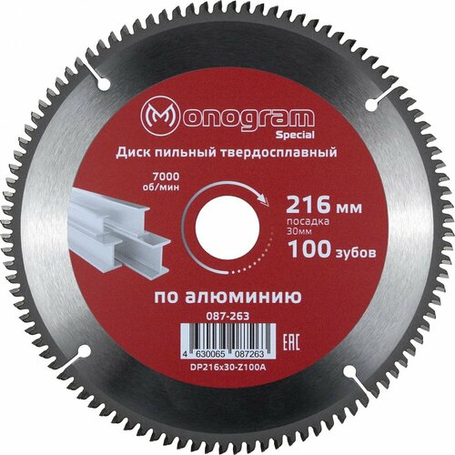 Диск пильный твердосплавный Special (216х30 мм; 100 зубов) MONOGRAM 087-263