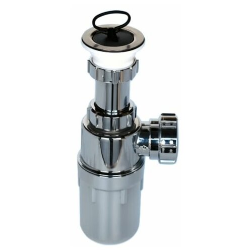 Сифон бутылочный хромированный с выпуском, пробкой и вставкой-"антисифон"