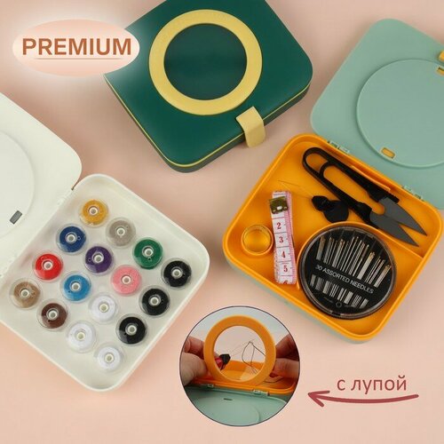 Швейный набор с лупой, 50 предметов, в двухъярусном боксе, 12 × 10,5 × 3 см, цвет микс
