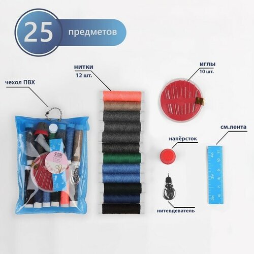 Швейный набор, 25 предметов, в чехле ПВХ, цвет микс, 6 штук
