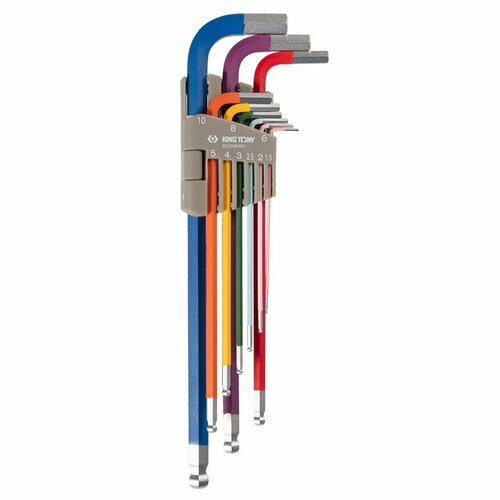 Набор Г-образных шестигранников 1,5-10 мм, длинные, с шаровым окончанием, 9 предметов KING TONY 20109MW