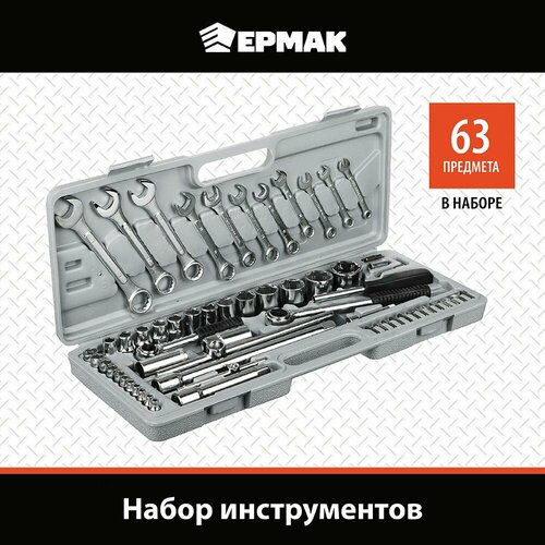 Ермак Набор инструментов 63 предмета, универсальный, 1/2" и 1/4"