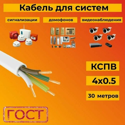 Кабель для систем сигнализации/видеонаблюдения, домофонов ГОСТ КСПВ 4х0.5 мм (0,20 мм2) - 30 м.