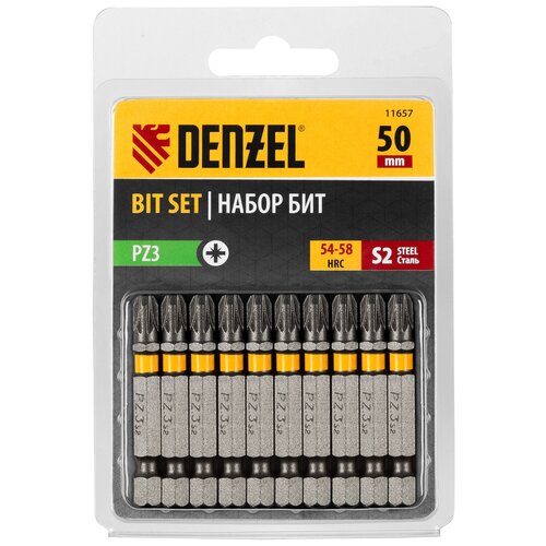 Бита PZ3х50, сталь S2, шестигранный профиль, 10 шт. Е 6,3 Denzel