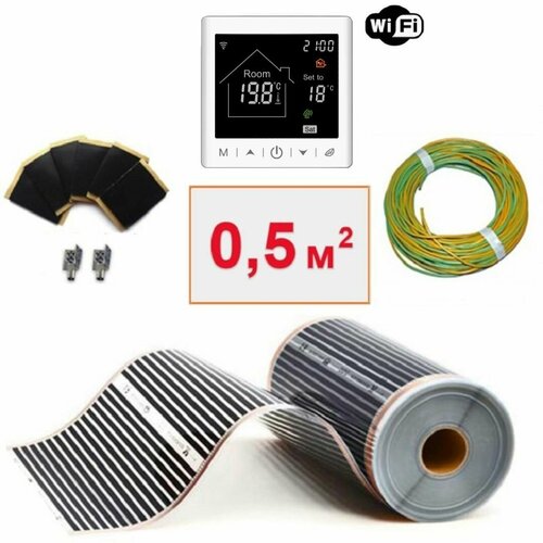 Пленочный электрический теплый пол под ламинат / линолеум / паркет 0,5 м. кв. с умным wi-fi терморегулятором. Инфракрасная пленка 0,5 м2