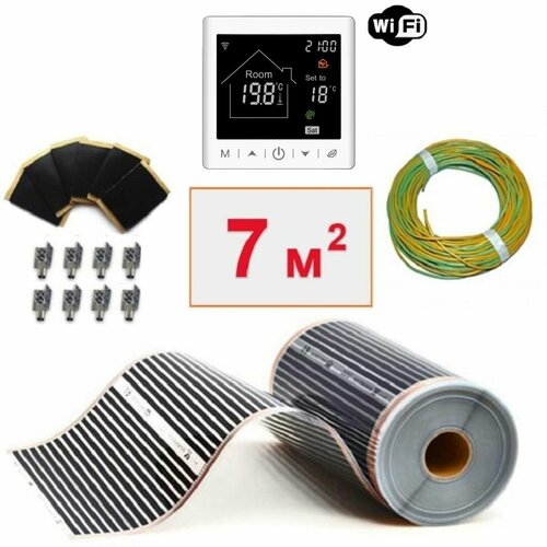 Пленочный электрический теплый пол под ламинат / линолеум / паркет 7м. кв. с умным wi-fi терморегулятором. Инфракрасная пленка 7 м2